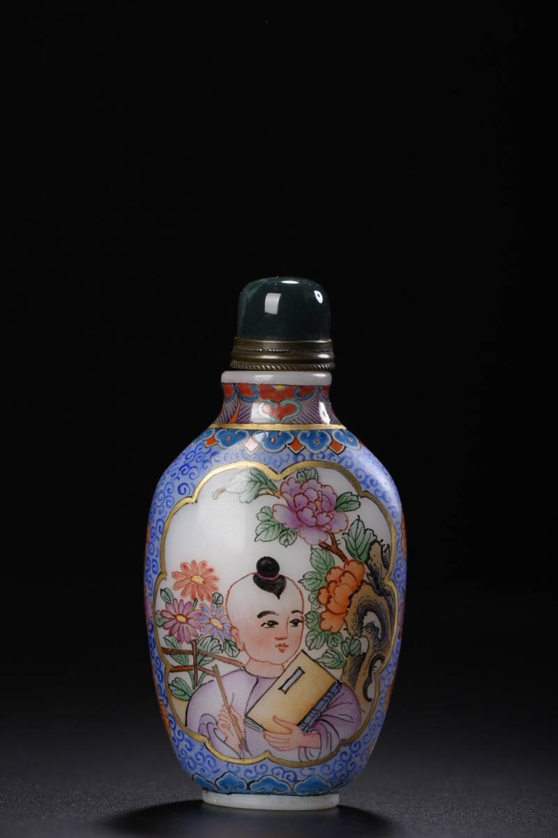 > 『館蔵珍品 琉璃製 細密彫 景泰藍 琺瑯彩 童子獻寿紋 鼻煙壺 根付 裝身具』稀少珍蔵品 古賞物 貴重物品 収蔵品 中国古美術 時代物 古董品