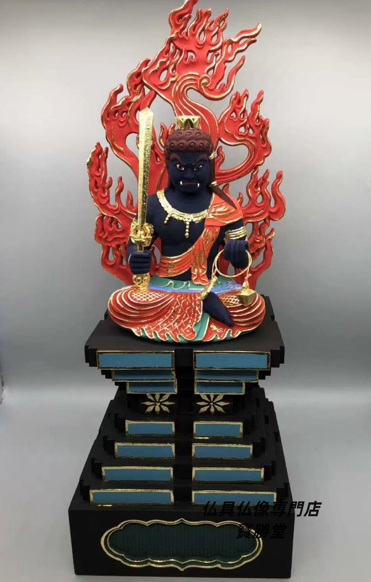 - 木彫仏像 仏教美術 精密細工 仏師で仕上げ品 総檜材 彩色 彩繪 切金 不動明王像 高さ37cm【送料無料】【仏具仏像専門店寶勝堂】