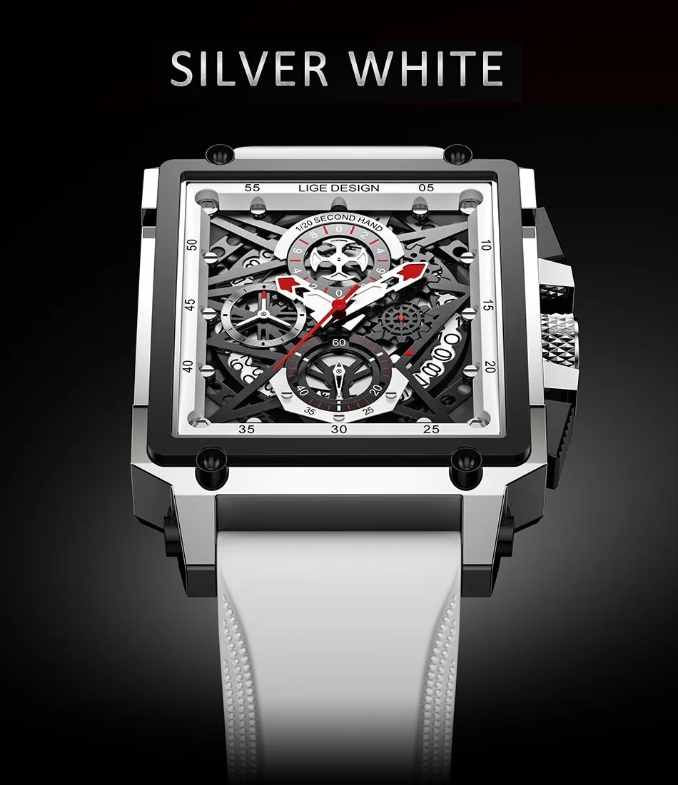 - LIGE メンズ腕時計 クロノグラフ 防水 シリコンバンド ホワイト