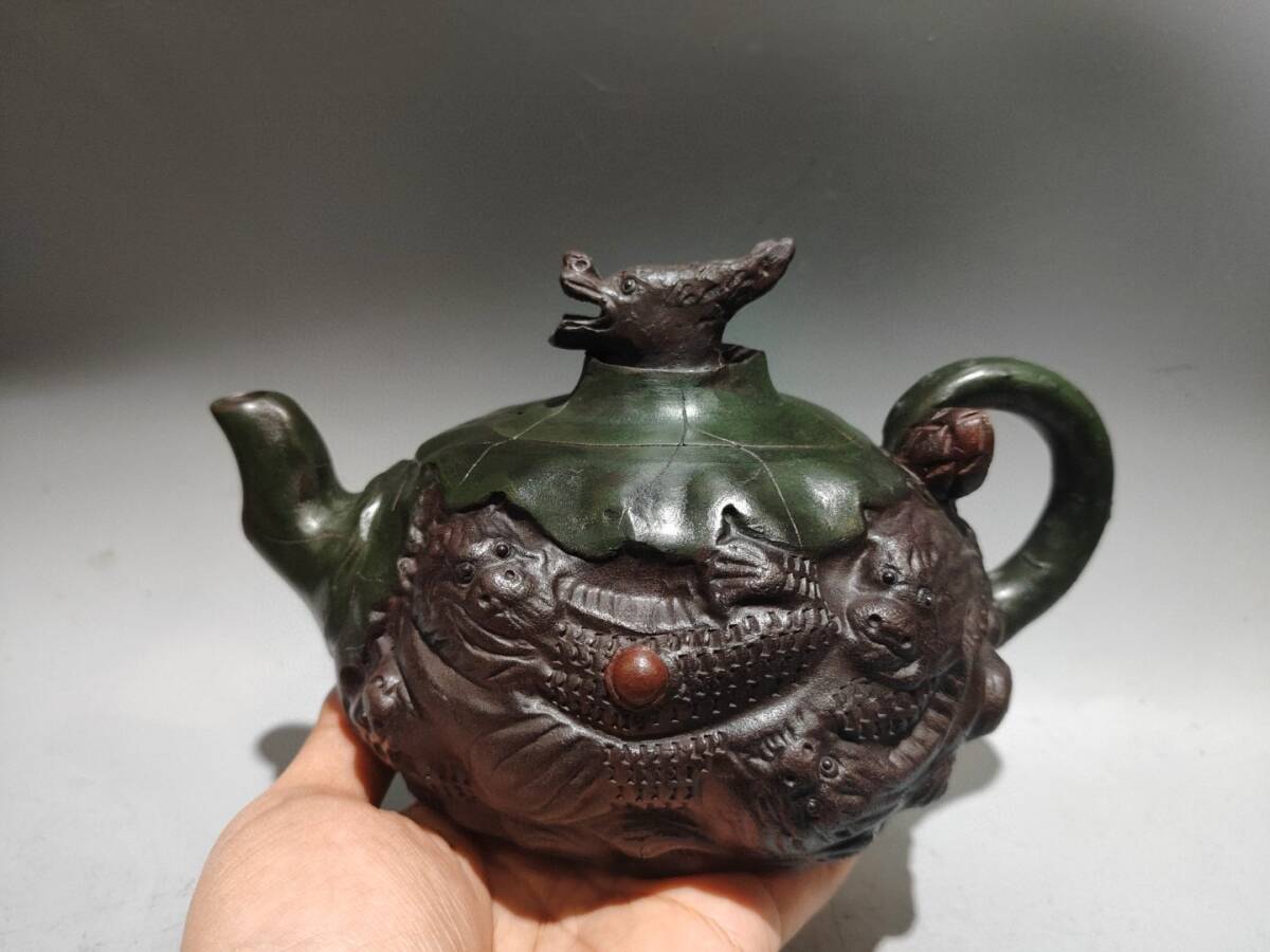 - 『館蔵珍品 紫砂壺 九龍壺 陳鳴遠款 紫泥 紫砂壺 茶具 茶道品』稀少珍蔵品 古賞物 貴重物品 収蔵品 中国古美術 時代物 古董品