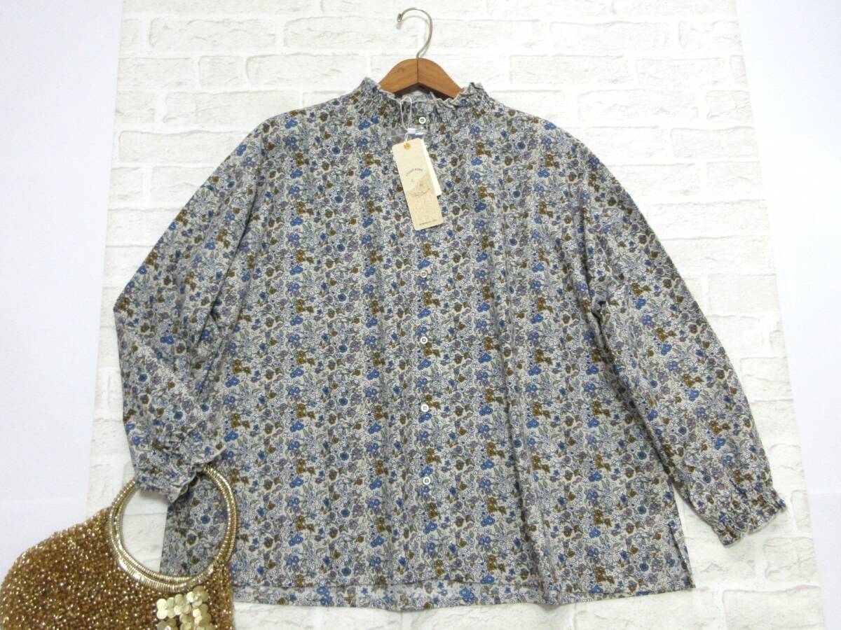 > 美品 送料込み cloud nine クラウドナイン ベージュ フラワー プリント 柄 コットン ブラウス ( 綿100% 花柄 小花柄 総柄 ゆったり 洗える