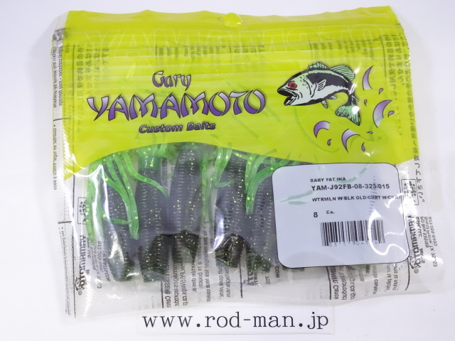 - ゲーリーヤマモト★ベビーファットイカ★ウォーターメロン/スモールゴールドフレーク-チャートリュース/チャートフレーク#323-015
