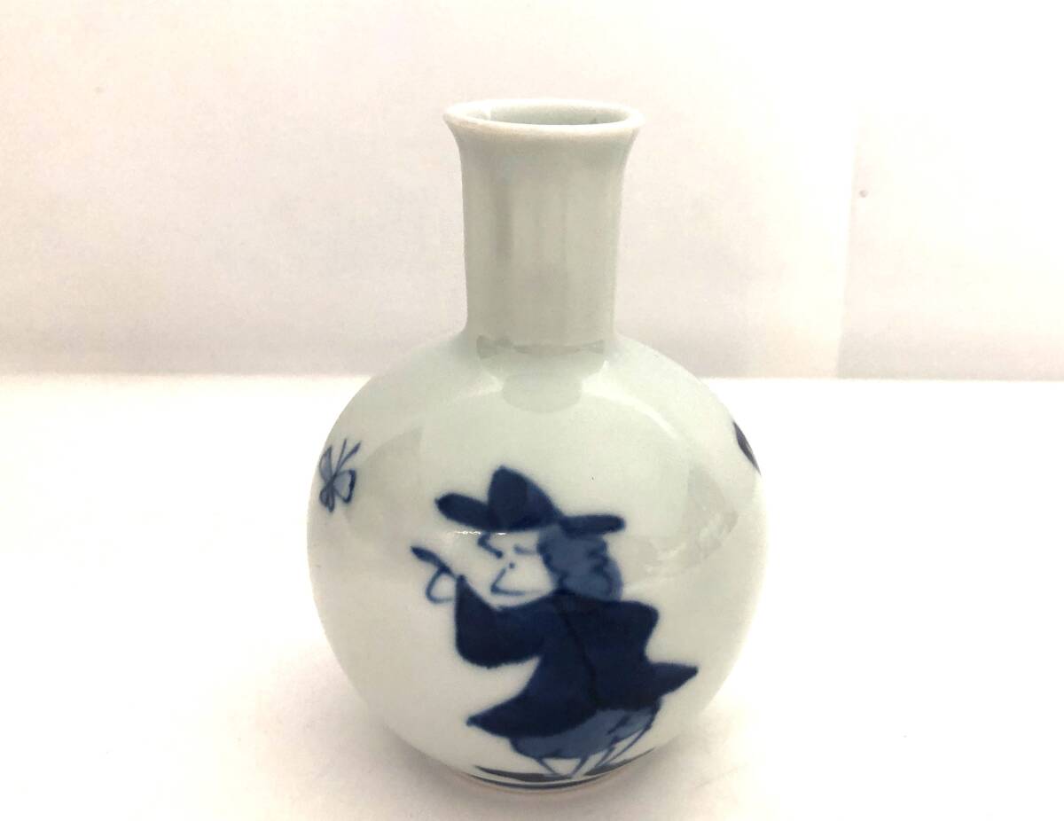 - 美品 しん窯 青花 異人 大航海 一輪挿し 花瓶 花器 花入 花生 飾り壷 壺 和風 インテリア オブジェ 置物 飾り物 染付 陶磁器 高さ10.7㎝
