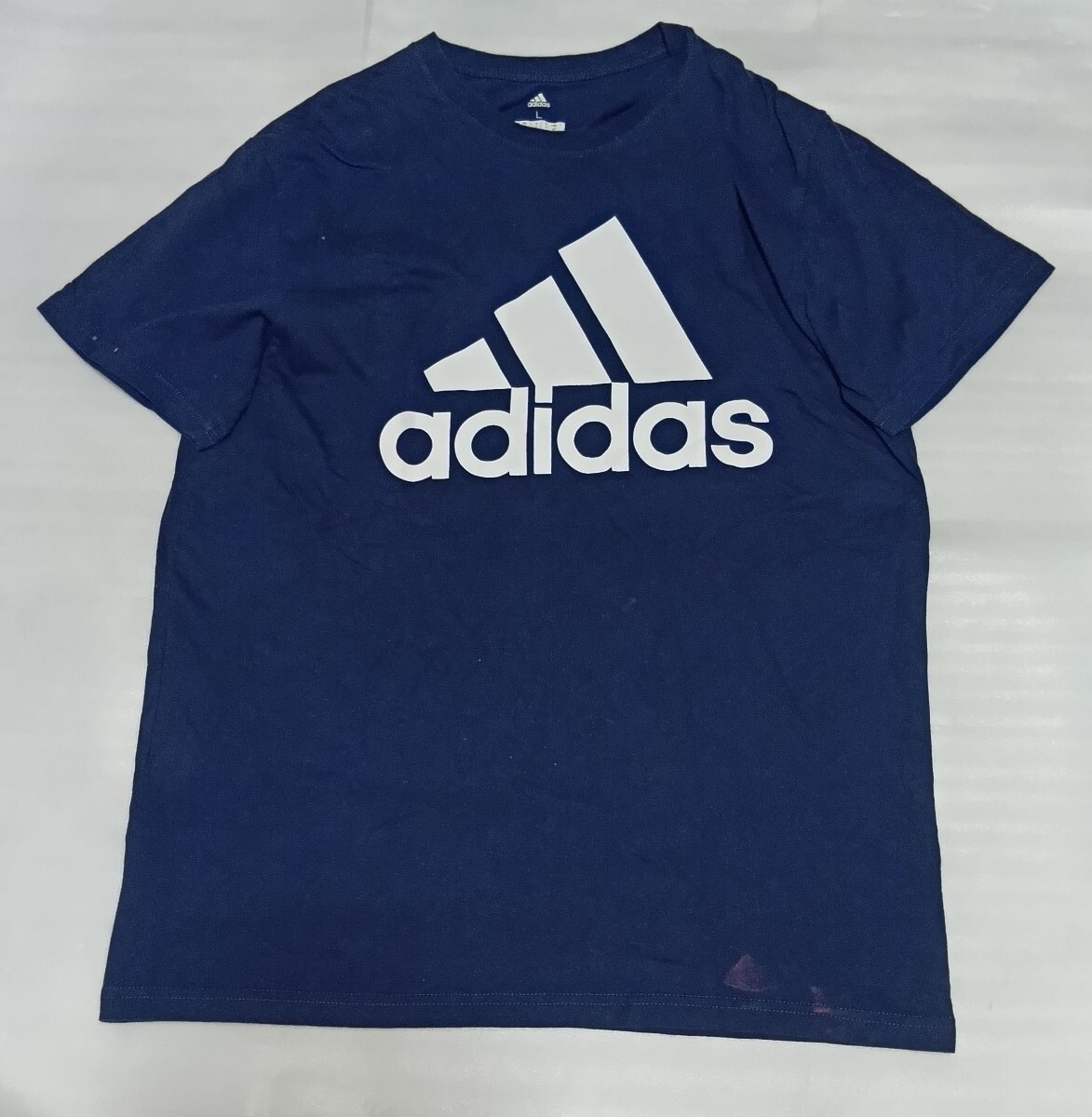 > ☆adidas.com GOLF TEE サイズL スポーツ半袖Tシャツ 紺色ネイビーBIGパフォーマンス白ロゴ ファッションCOTTONティー アディダス ゴルフ☆
