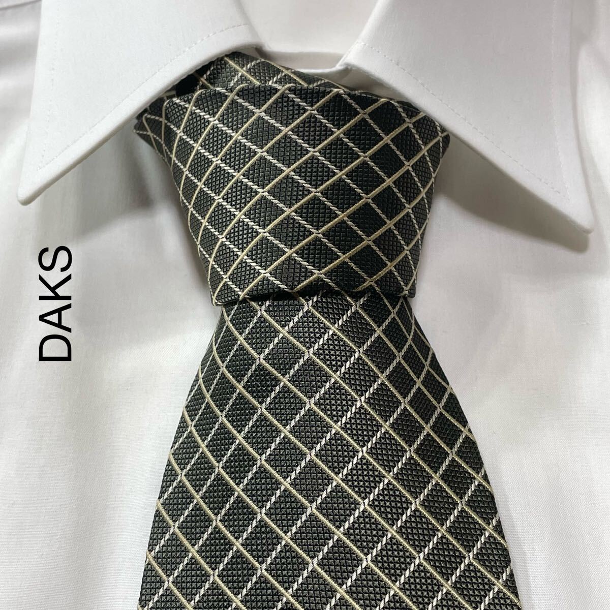 - DAKS ダックス チェック ジャガード シルク ネクタイ カーキ TG1885