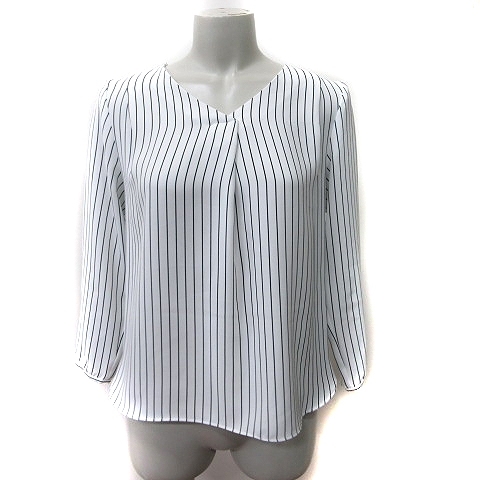> インディヴィ INDIVI ブラウス プルオーバー ストライプ 長袖 05 XS 白 ホワイト 黒 ブラック /YI レディース