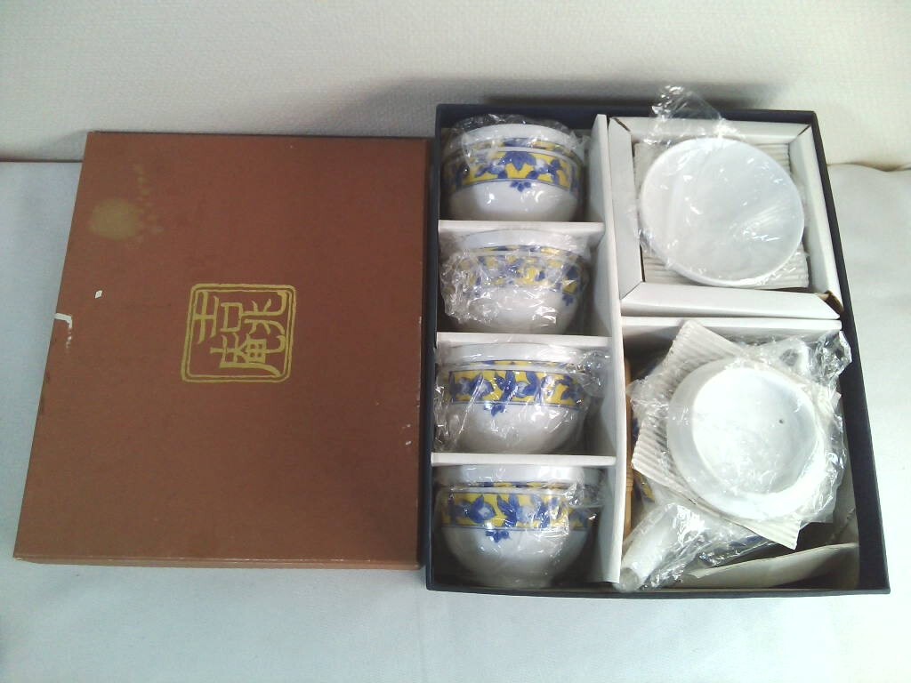 - 吉兆庵 錦蓋付煎茶器揃 5客セット 和食器 (株式会社 桃山) 元箱付き