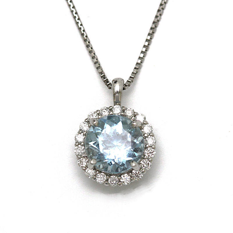 - アクアマリンネックレス 0.768ct ダイヤモンド Pt850/950 ラウンドミックスカット プラチナ 30513