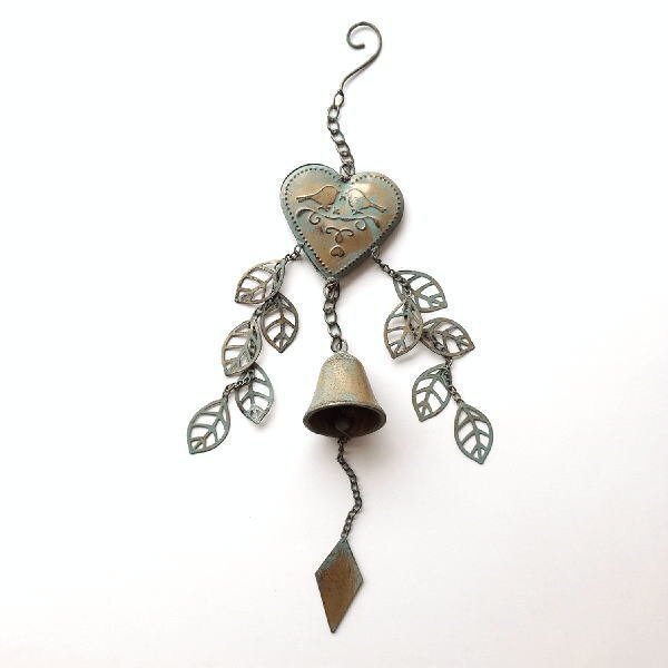 - ベル 玄関 アイアン おしゃれ レトロ アンティーク かわいい オーナメント アイアンハート&リーフベル 送料無料(一部地域除く) mty4553