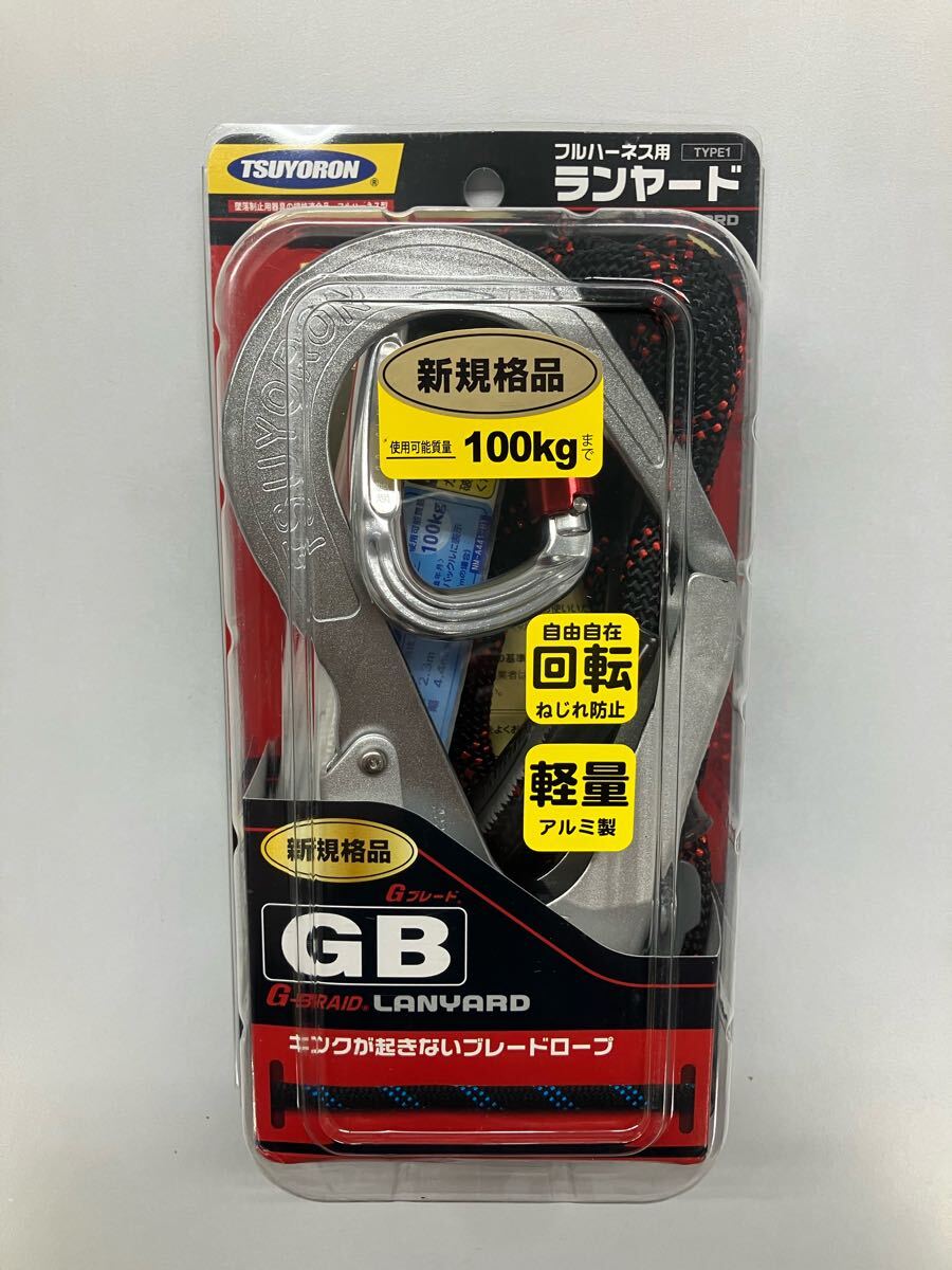 - 藤井電工 新規格フルハーネス用ランヤード Gブレード ロープ式 シングルランヤード THL-GB93SV-21KS-BK-R23 安全帯 ツヨロン TSUYORON