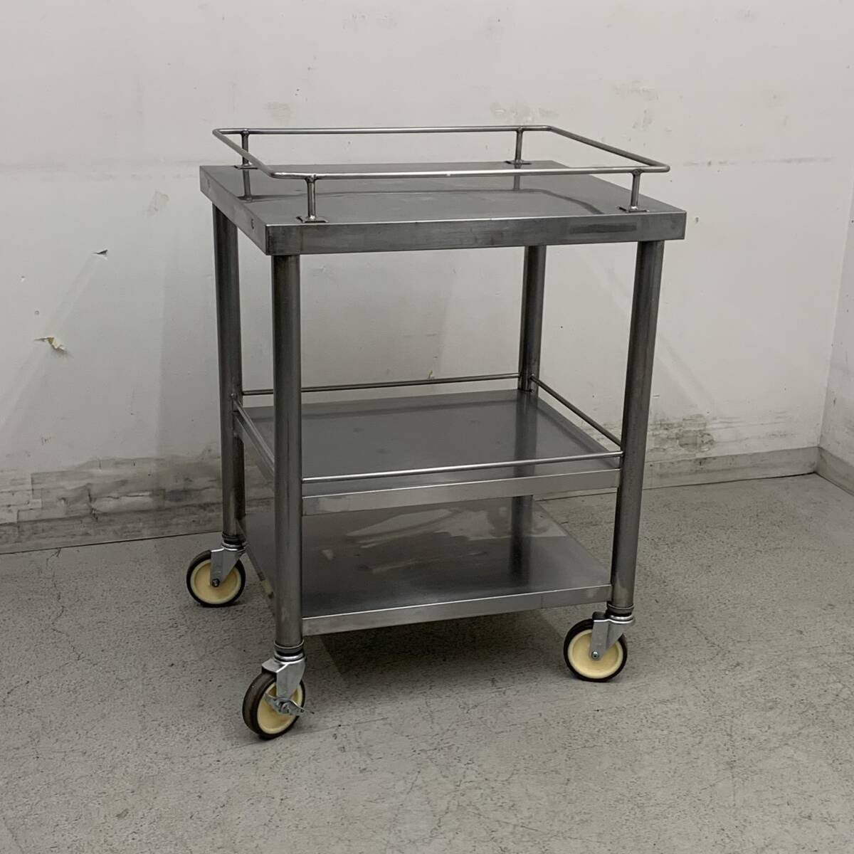 - 【中古】 A08031 移動台 中棚付き ステンレス W600 x D500 x H750(+60) mm 【業務用】【厨房用】【ヤマトらくらく家財便】