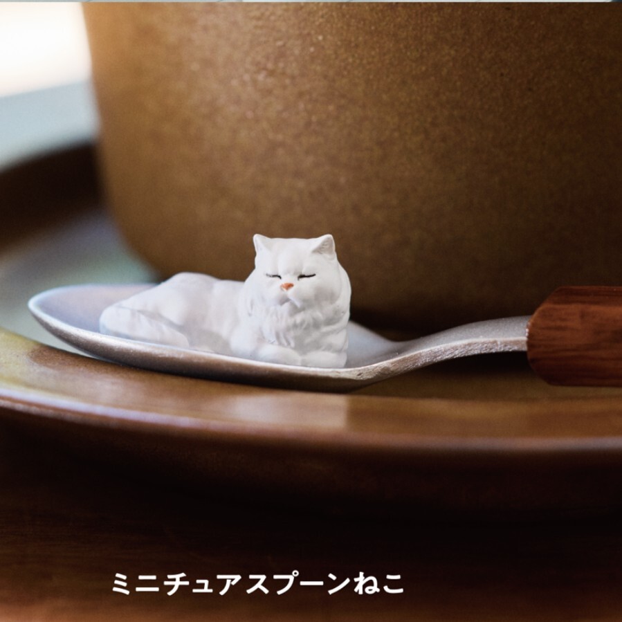 - ミニチュアねこ ミニチュアスプーンねこ フィギュア 猫 ネコ カプセルトイ ガチャガチャ ガチャ ミニチュア ミニ 白猫 シロネコ しろねこ