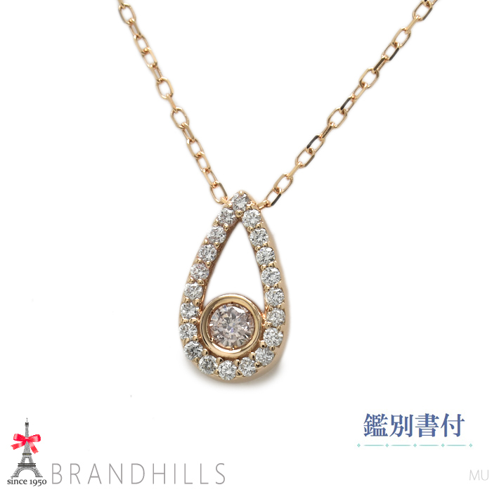 > ピンクダイヤモンド 0.071ct ダイヤモンド 0.14ct ネックレス 鑑別書付 K18金 750PG ピンクゴールド 1.8g 極美品