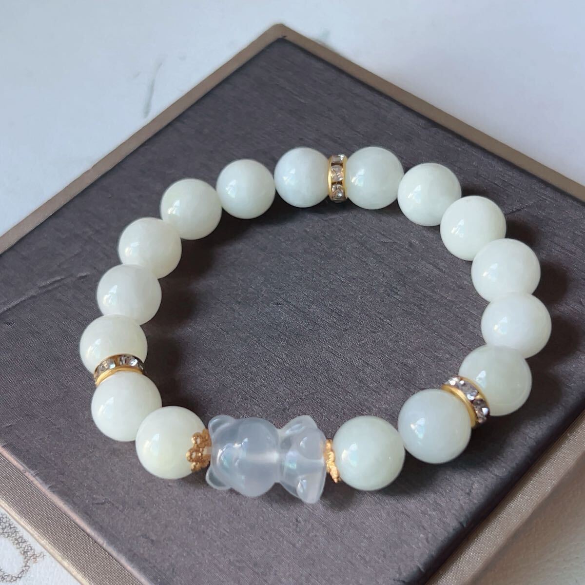 > ◇和田玉+ 蛍石 (くま形)◇ブレスレット◇パワーストーン◇天然石◇巾着袋付き◇プレゼントにも037B6133