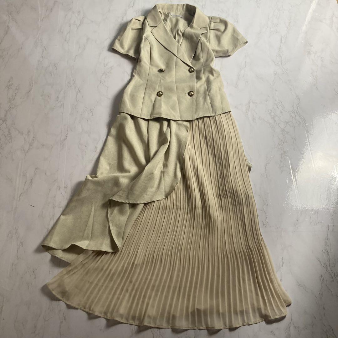 - 【LIP SERVICE】ジャケットレイヤードプリーツワンピース ライトベージュ