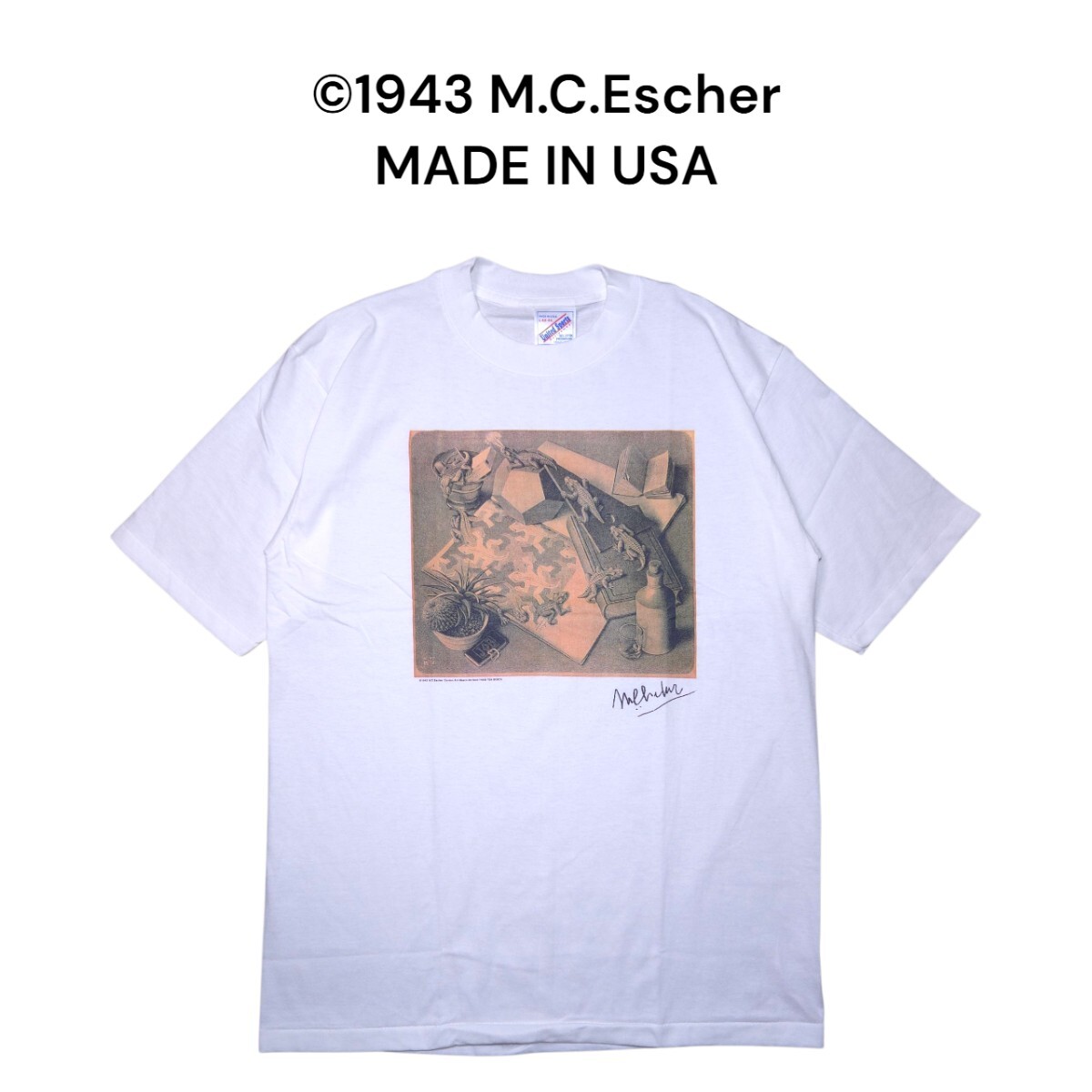 - M.C.エッシャー アートビックプリントTシャツ USA製 美品 爬虫類