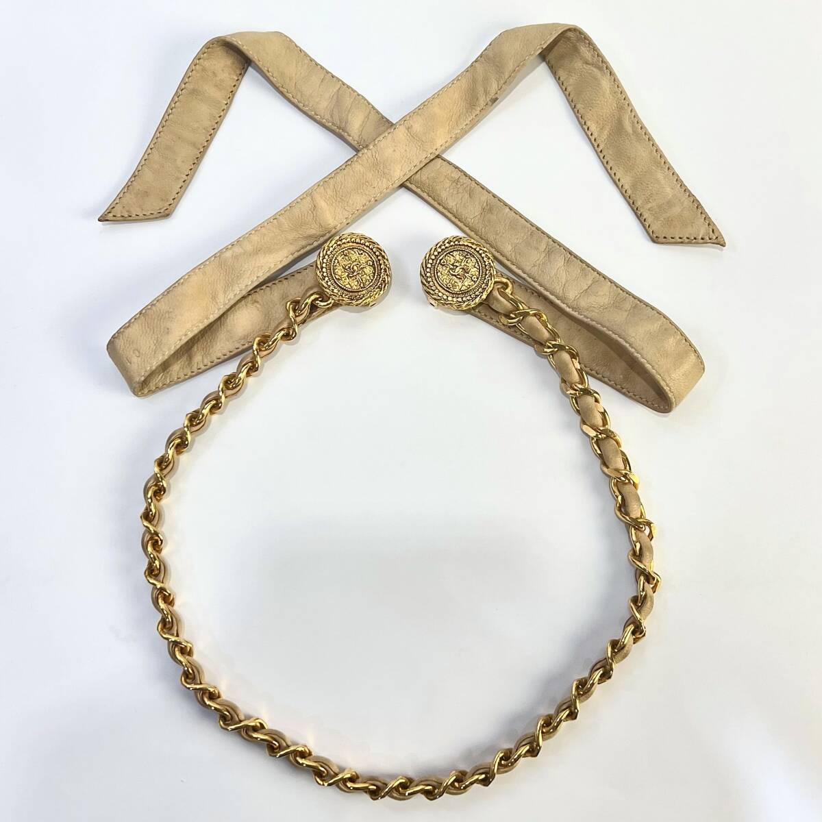 - CHANEL シャネル ココマーク リボン チェーン ベルト GP ベージュ 131cm レディース ファション小物 アクセサリー