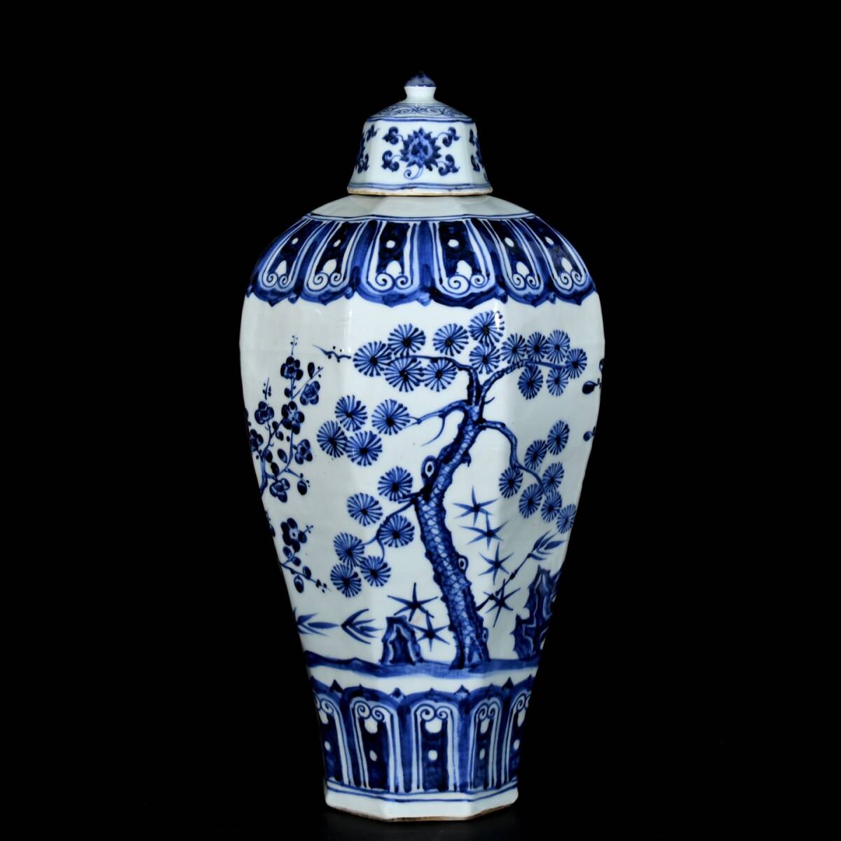 - 多宝閣 ■ 202250 人間国宝 中国磁器【明宣徳青白梅花瓶(松竹梅文様)】工芸品 施釉陶 陶芸 置物 收藏品 孤品