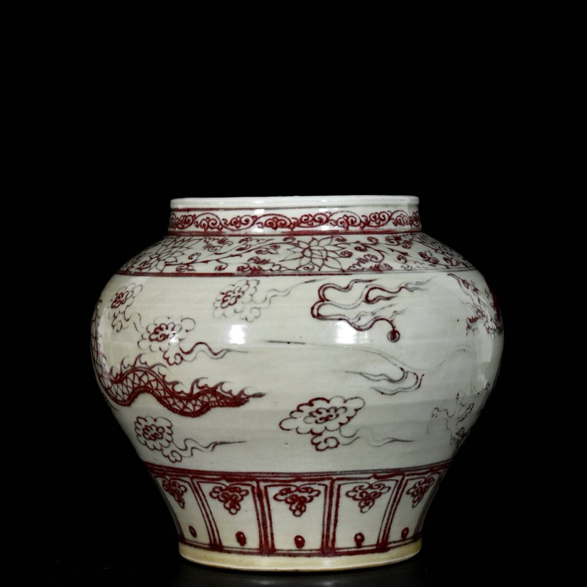 > 多宝閣 ■ 202251 中国磁器 中国骨董【元代の釉裏赤龍文壺】工芸品 施釉陶 陶芸 置物 收藏品 孤品
