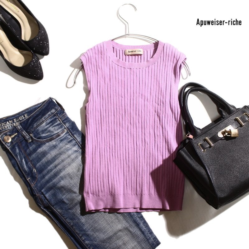- 美品 Apuweiser-riche アプワイザーリッシェ 春 夏 リブ サマーニット ノースリーブカットソー 2 ラベンダーピンク