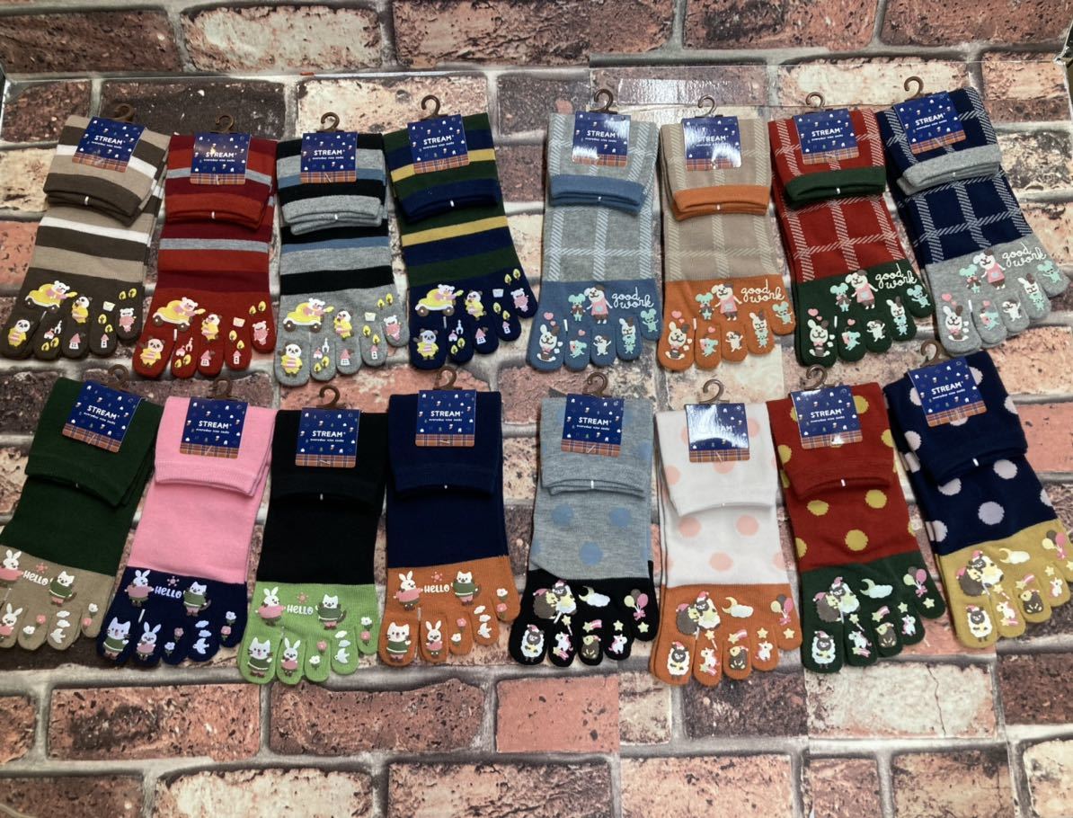 - 送料無料『16種から2足組』メチャ可愛い指先ラバー付き!【STREAM】5本指 綿混クルー丈ソックス
