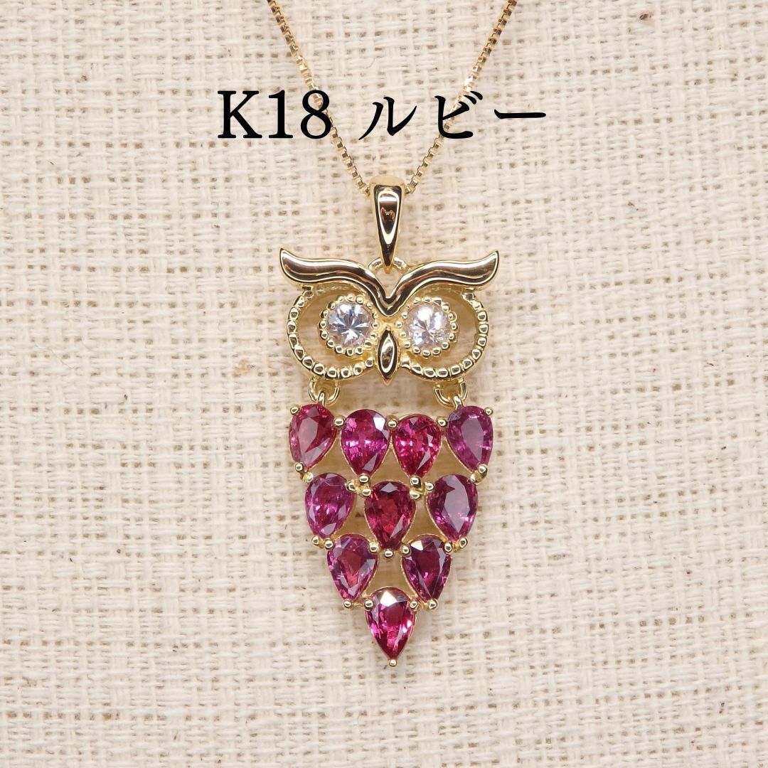 - ルビー ペンダントトップ 1.77ct Z0057 ゴールドK18 フクロウ梟