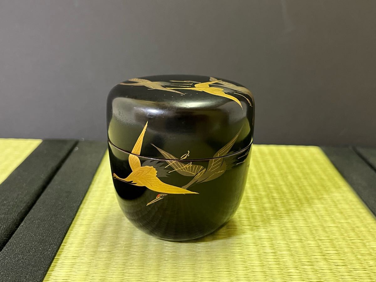 - 棗 蒔絵 鶴 漆絵 木製漆器 茶道具 茶器 直径約6cm 漆芸
