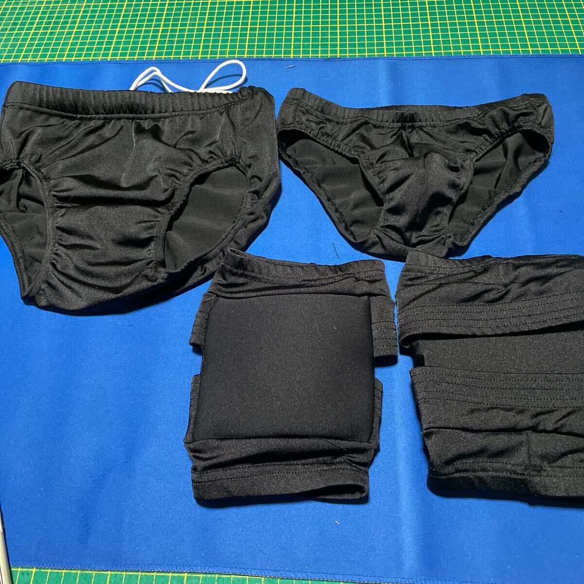 - Sサイズプロレス3点セット 黒色 ショートタイツ アンダーパンツ ニーパット 水着