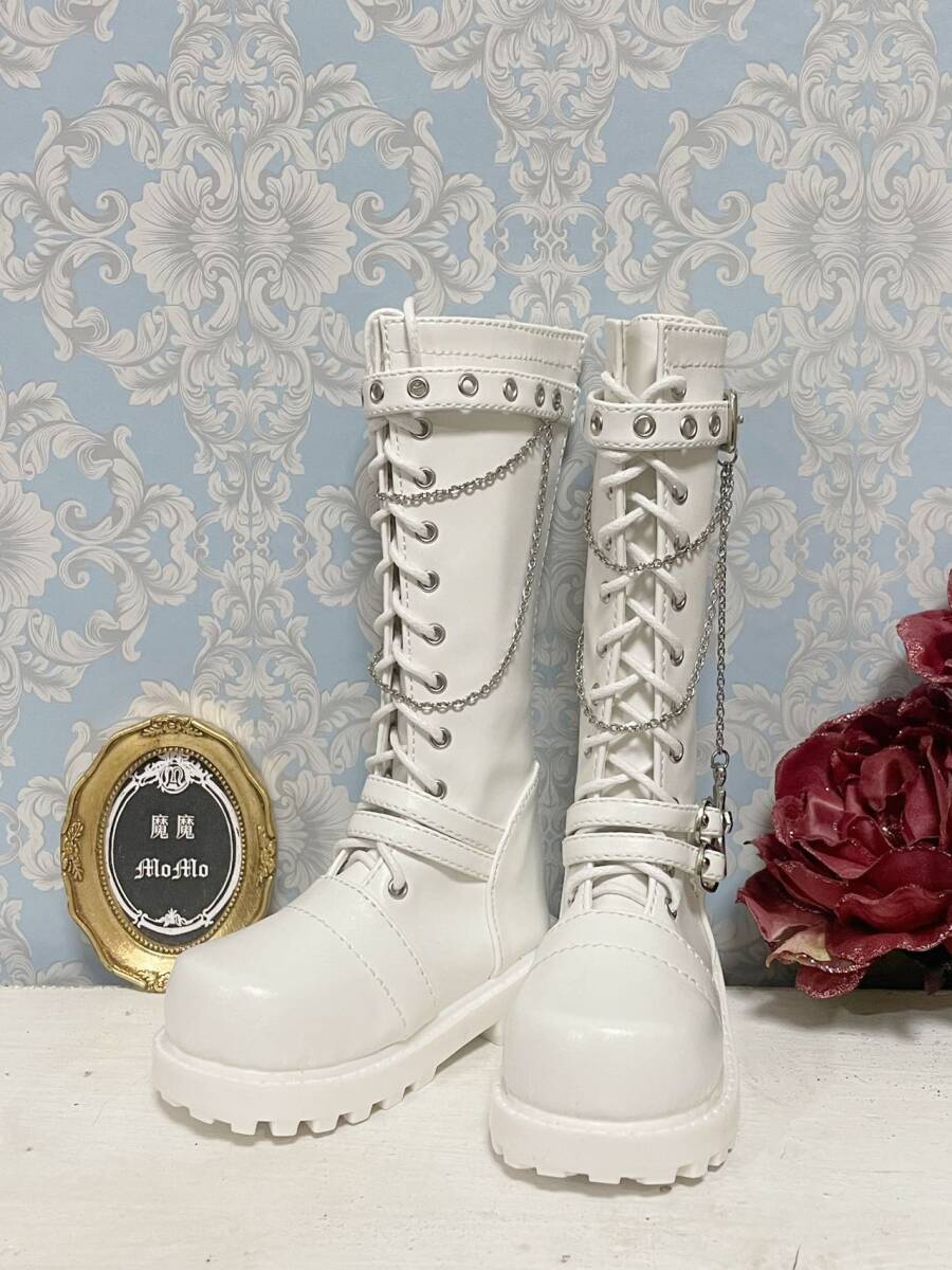 - 魔魔★DD/SD男女 チェーン付き編み上げロングブーツ 白★新品