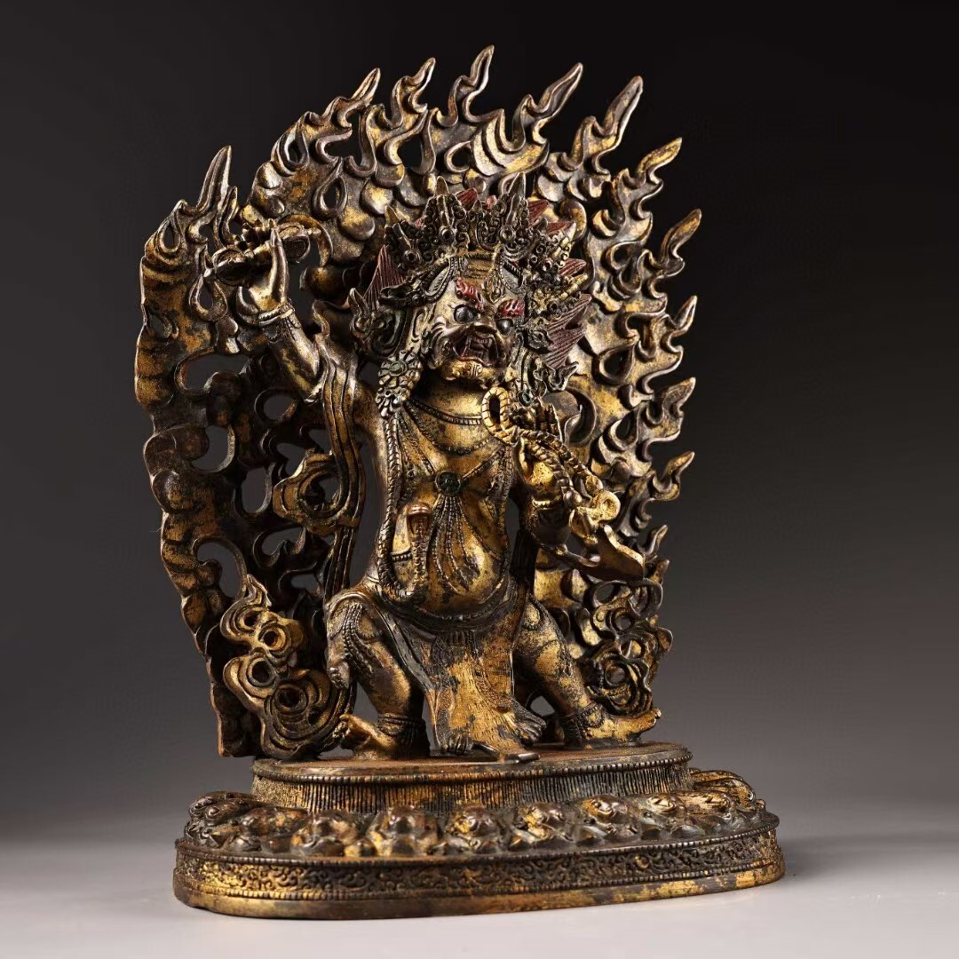 - 仏像 清代 旧蔵 チベット古寺 古銅 蔵伝蒔絵金剛手護法仏像1体 銅製 銅琉金 唐物 收蔵品 時代物 古美術 古置物 希少珍品 供養品 文房具6.17