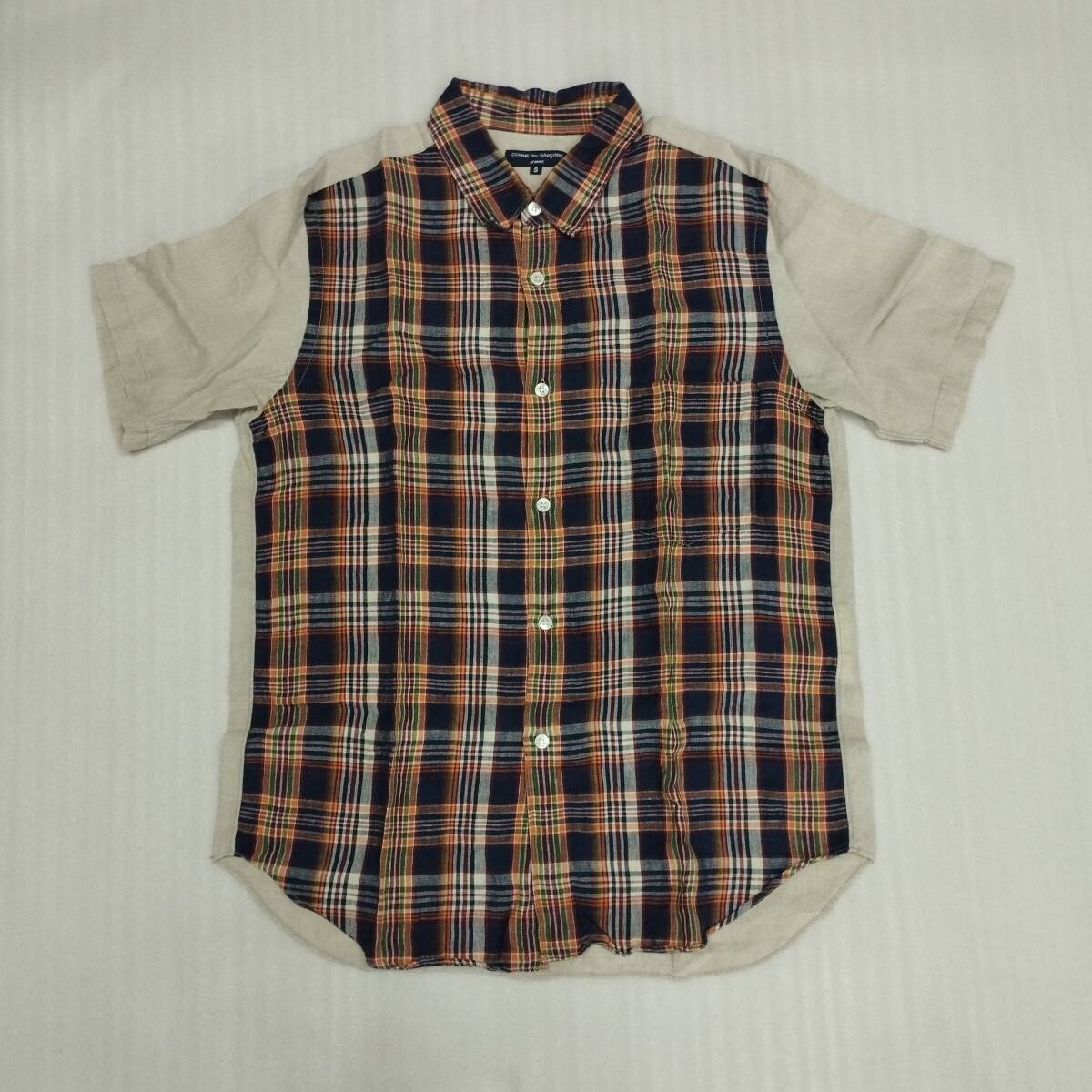 > 【s11063】コム デ ギャルソン オム チェック切替 半袖シャツ COMME des GARCONS HOMME Sサイズ