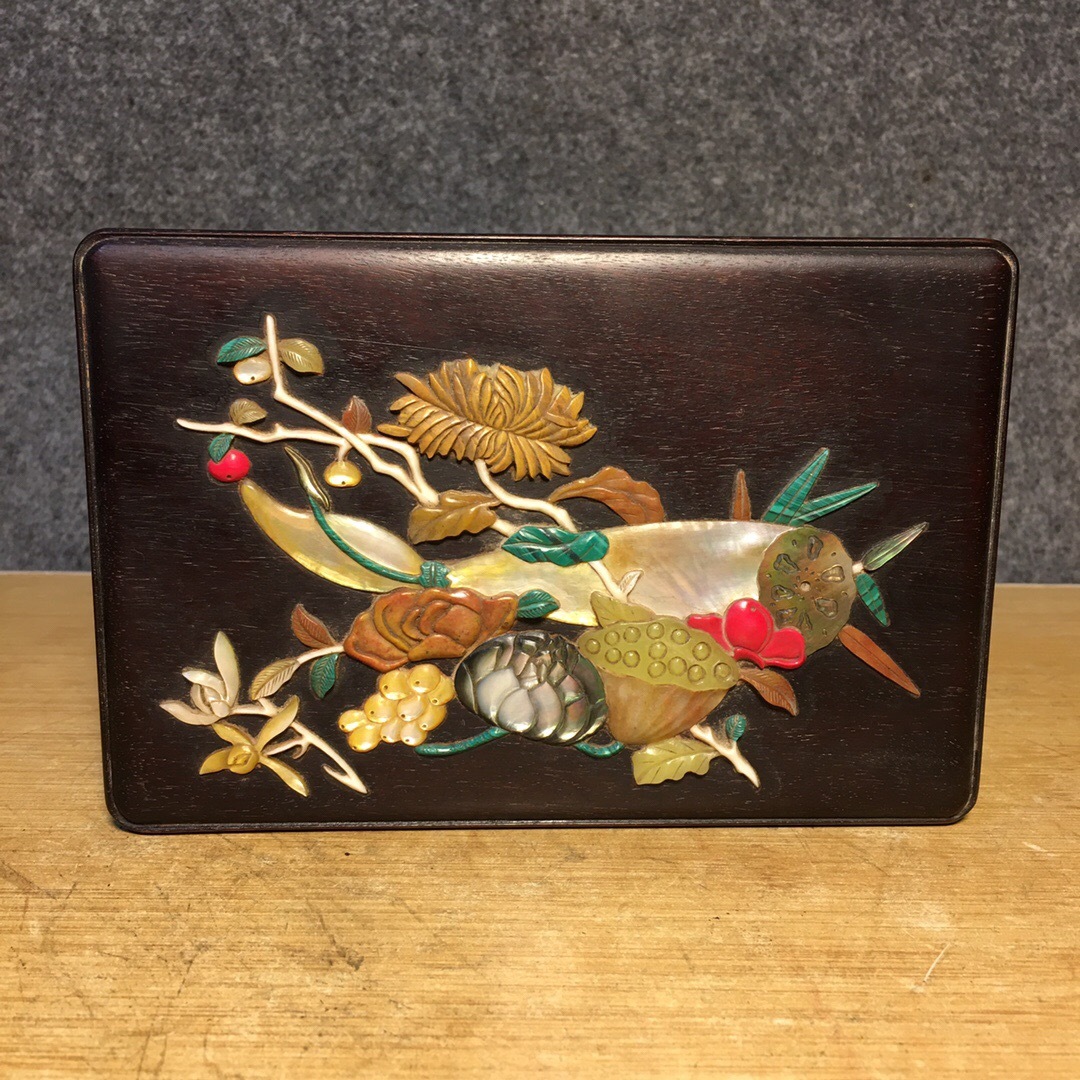 - 蔵友旧蔵出 紫檀木製 細密彫 百寶嵌 多子多福紋 首飾盒 文房具 置物 賞物 中国時代美術品