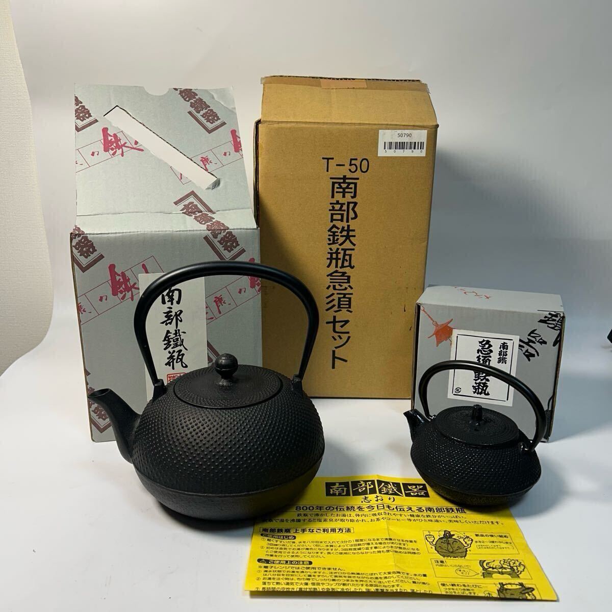 - 南部鉄器 鉄瓶&急須 2個セット 金属工芸 鉄器 茶器 茶道具 急須 0.3L 鉄瓶 1.2L 煎茶道具 丸アラレ アサヒ マ16