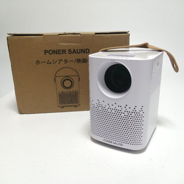 - ★SALE★ PONER SAUND プロジェクター V2 白 リモコン スクリーン付き 【PSEマークあり】【訳あり※ベルト取付部破損】 98 00019