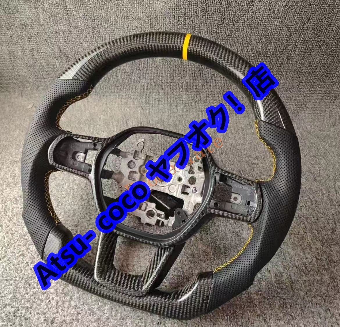 > リアルカーボン製・パンチングレザー製 ホンダ シビックタイプR FL5 ステアリング1個 黄色いセンタライン