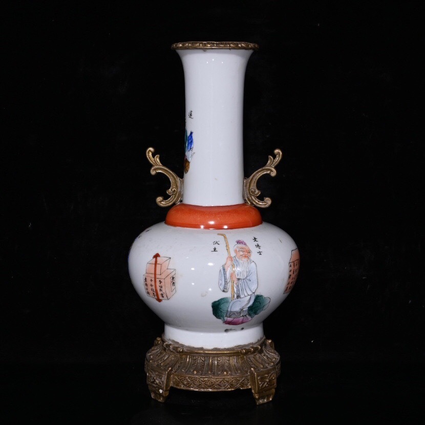 > 蔵友旧蔵出 清 咸豐年製款 粉彩 人物故事紋 包銅 回流瓶 稀少珍品 貴重品 古陶瓷品 置物 古賞物 中国古玩 中国古美術品
