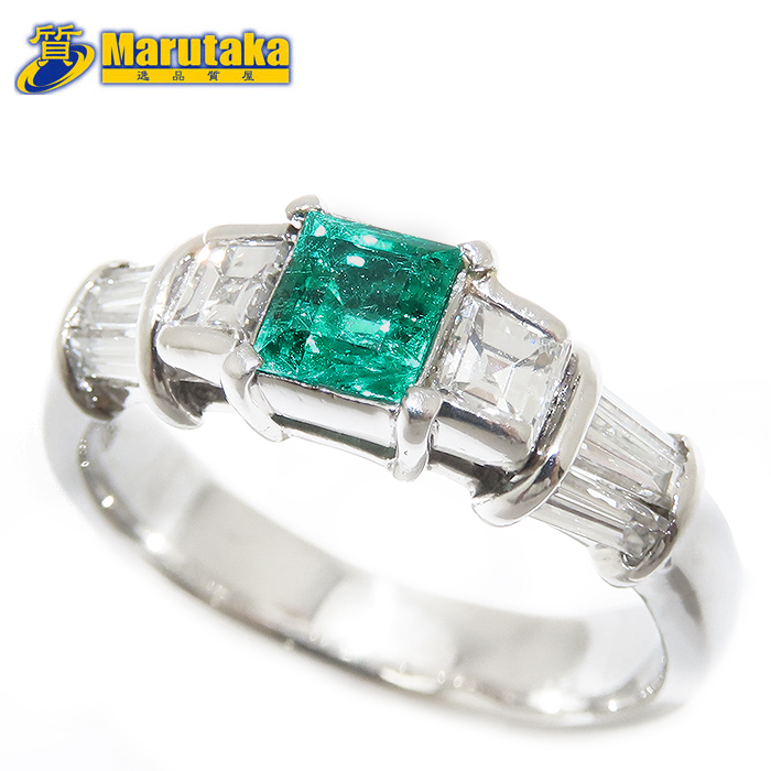 - エメラルド ダイヤモンド リング 16.5号 鑑別書 Pt900 指輪 逸品質屋 丸高 尼崎市 E0.51ct D0.65ct 7.8g