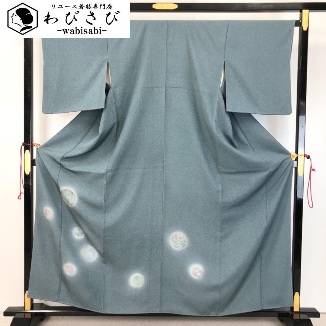 > 付下げ 丸暈しに花模様 鹿 金彩 暈し 叩き染 沈香茶色 K-4919 着物 きもの kimono 和服 和装 中古 リサイクル着物 【送料無料】