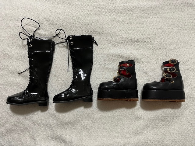 - ドルフィー 靴 シューズ ブーツ エナメル 編み上げ セット 難あり ベルト付 厚底 ボークス ドール用 黒 ブラック ロング