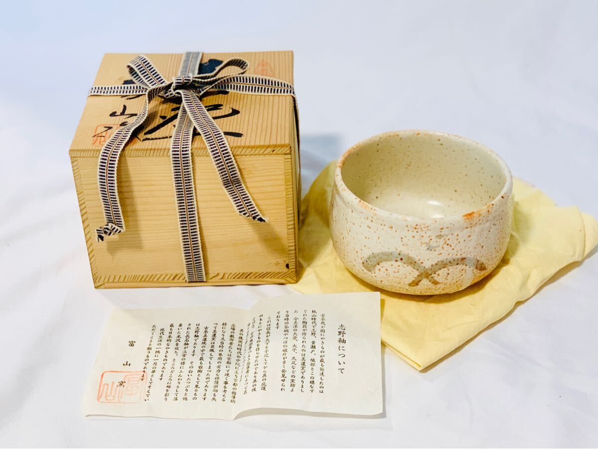> 美濃焼 富山造 志野釉 富山窯 志野茶碗 絵志野 茶道具 抹茶碗 茶道 刻印 書付 共箱 共布 未使用品 志野焼 茶