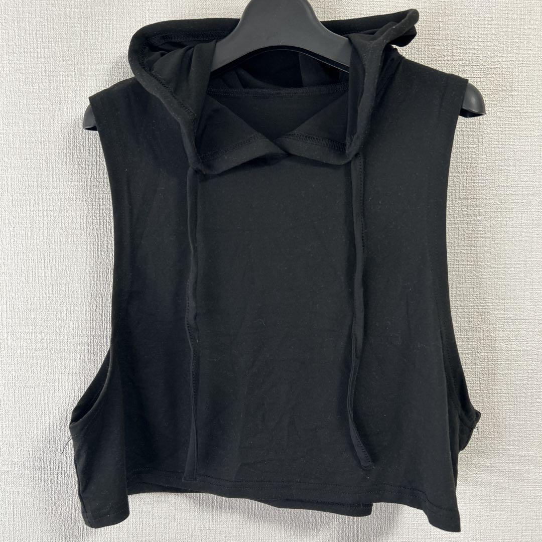 - SHEIN ノースリーブフーディカットソーパーカー黒S シーントレーニング カットソー ストレッチ ルーズ レイヤードスタイル カジュアル
