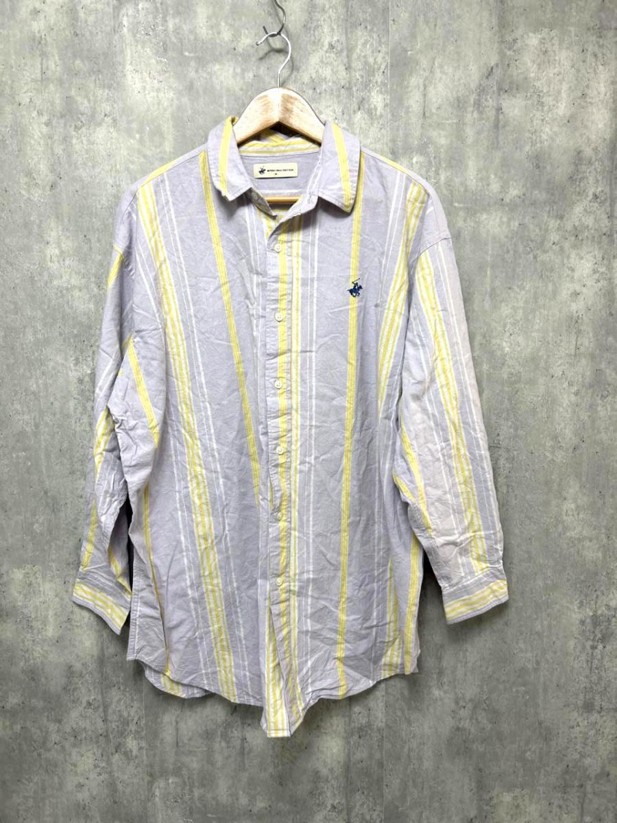 - BEVERLY HILLS POLO CLUB ストライプ シャツ sizeM/ラベンダー ■■ メンズ