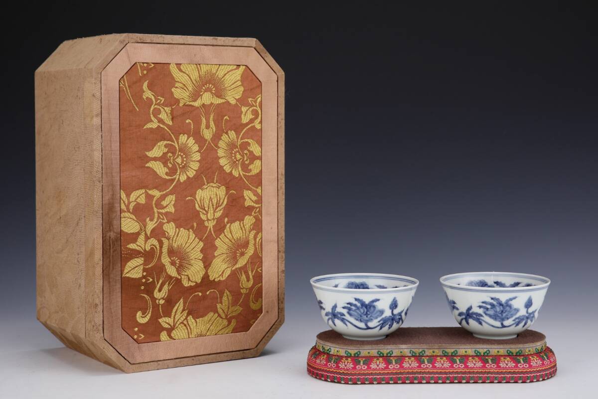 - 多宝閣 ■ 202312 中国磁器 中国骨董【明成華の青白オクラカップ】工芸品 施釉陶 陶芸 置物 收藏品 孤品