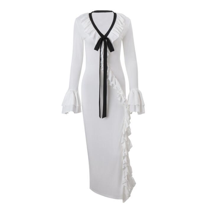 - 上質ディースワンピース 大人sexy 可愛い 人気 ロング丈 二次会ドレス リボン飾り 白