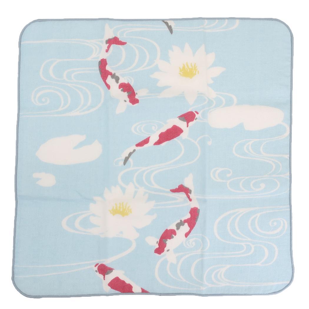 - ミニタオル ジャパニーズスタイル 片面ガーゼハンカチタオル 鯉とスイレン 日繊 汗拭きタオル かわいい お土産 グッズ