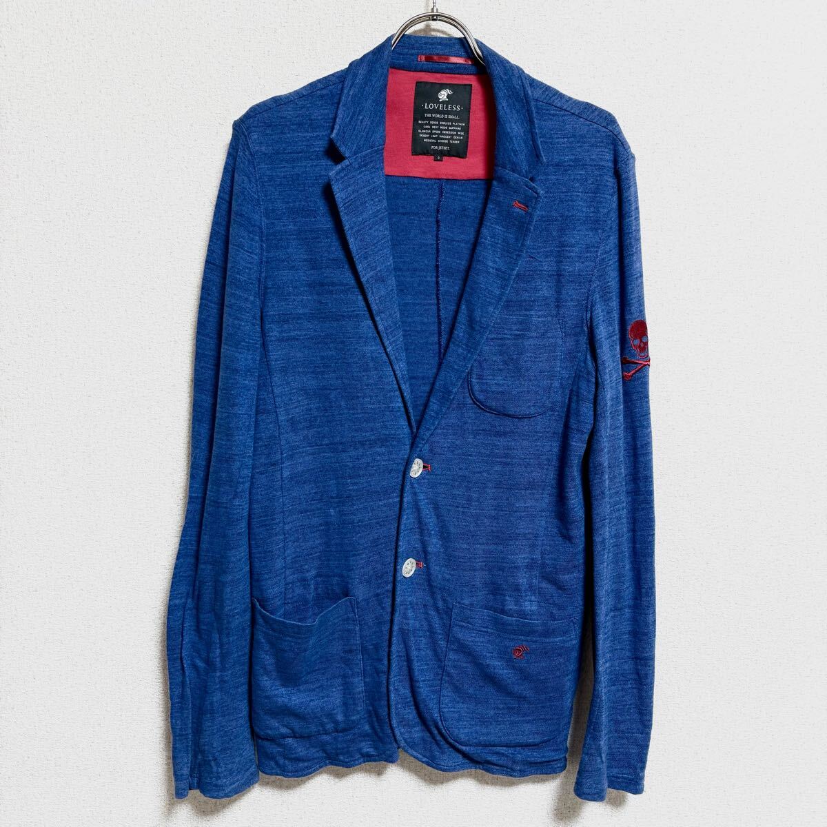 - LOVELESS ラブレス 長袖ニットカーディガン テーラードジャケット カジュアルジャケット 薄手 ブルー メンズ サイズ 3 M-L相当 *AA