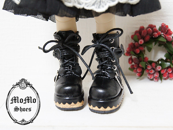 - 魔魔★幼SD/幼天使/幼Midi共通 レースアップベルトブーツ 黒★新品