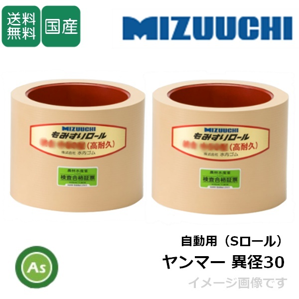 > 水内ゴム もみすりロール ヤンマー異径 自動用(Sロール)大30+小30 3インチ 高耐久ロール(ドラム赤色) 1台分(2個) (Mt