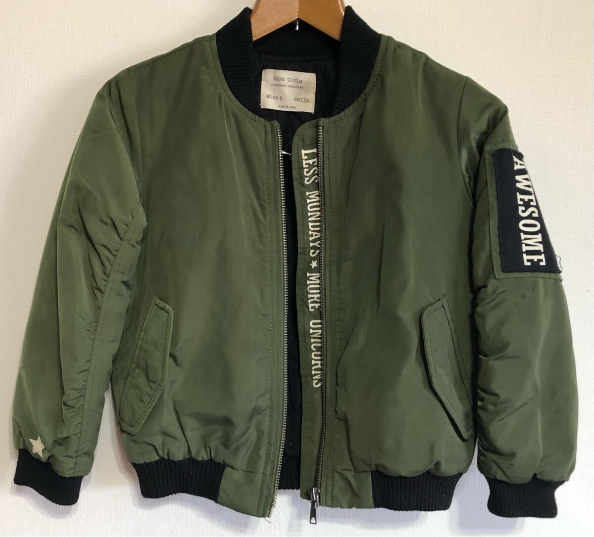 > ZARA/ザラガールズ/キッズ/子供服/男女兼用/オリーブグリーン/MA-1/ジャケットサイズ6/116cm/ブルゾン/アウター/ミリタリー