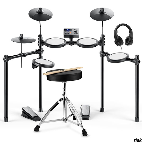 - 【4ドラム+3シンバルの構成でバランスの取れた演奏が可能】 電子ドラム 子供 初心者 メッシュ 静音 折りたたみ MIDI 自宅練習 黒